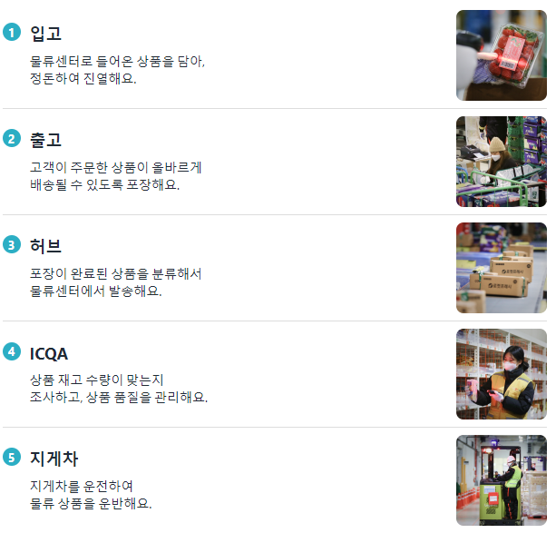 쿠팡 단기알바를 하시게 되면 크게 4가지 분야의 업무를 맏게 되십니다.